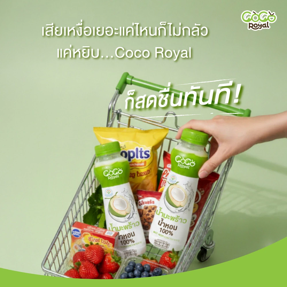 COCO ROYAL คัดสรรมะพร้าวคุณภาพดี ให้รสชาติหอมหวานจากธรรมชาติ ดื่มง่าย สดชื่นได้ทุกช่วงเวลา ตอบโจทย์ไลฟ์สไตล์คนรักสุขภาพด้วยสูตร ไม่เติมน้ำตาล และไม่ใส่วัตถุกันเสีย ให้คุณมั่นใจในทุกการดื่มเพื่อเติมพลังและความสดชื่น